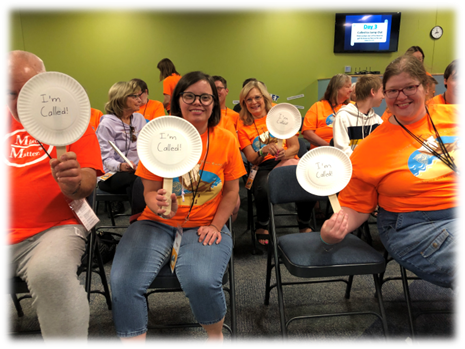 Three of our friends with disabilities worked together to make a card for me and gave it to me as we headed in for worship and the large group lesson.