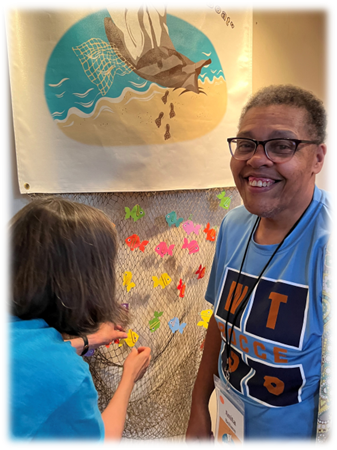 The friends and volunteers at all the Gatherings, wrote the names of people they care about on paper fish. These were the people who are close to them, and they wanted to encourage them through their prayers. They included family members, their staff, roommates, and just maybe your name was on one of those fish.