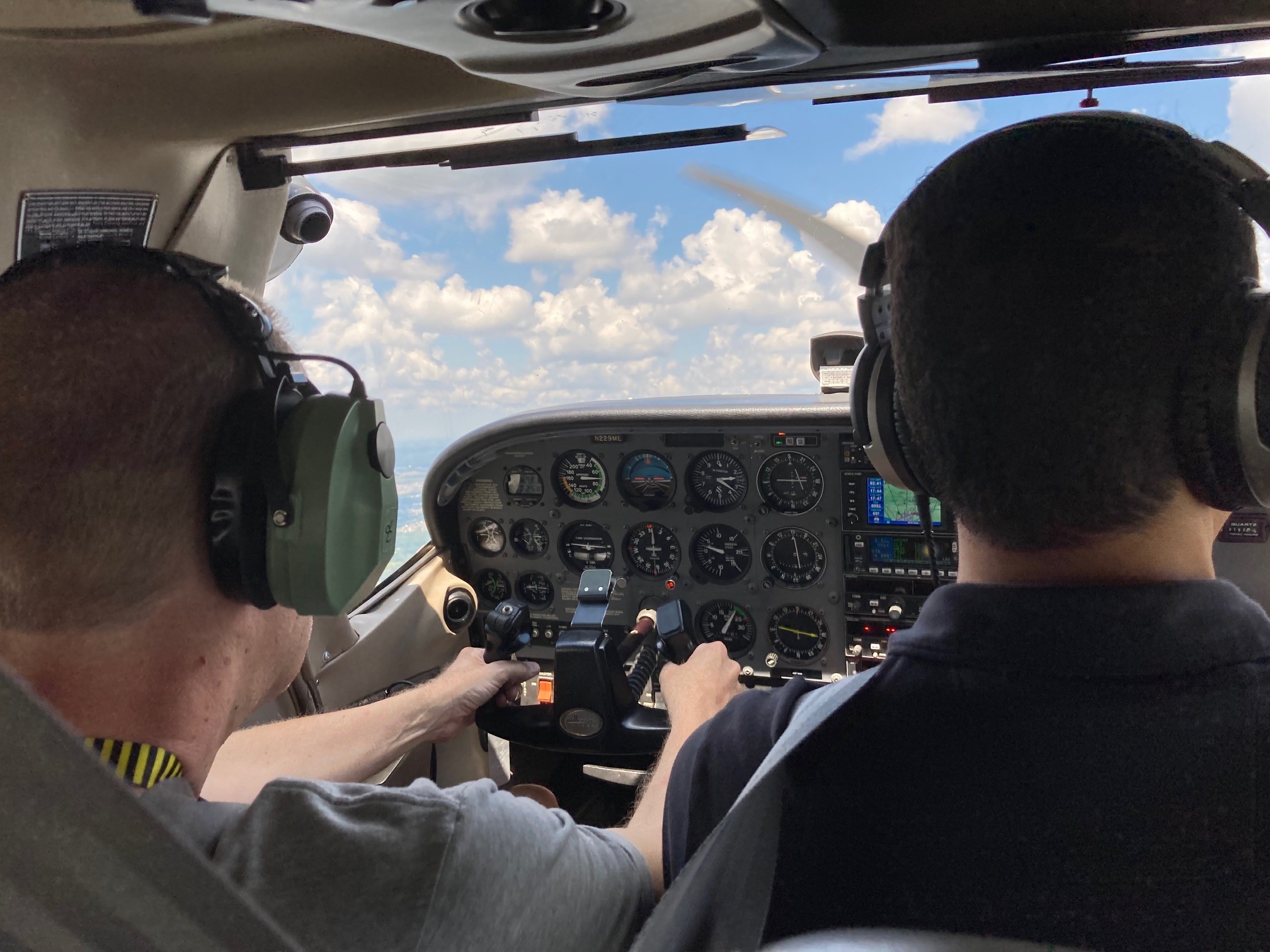 I met CP at Tom Wood Aviation in Fishers along with his pilot Robert. The plane was a small four-seater. My anxiety rose when CP climbed into the pilot seat, and I climbed into a rather small backseat.